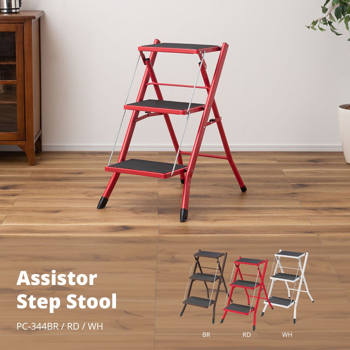 ステップ台 レッド W42.5×D65.5×H68 PC-344RD ステップ台 踏み台 3段 折りたたみ おしゃれ 滑りにくい スリム コンパクト スチール 軽量 持ち運び グリップ付き ノンスリップ 収納 ディスプレイ 簡易チェア チェア スツール レッド