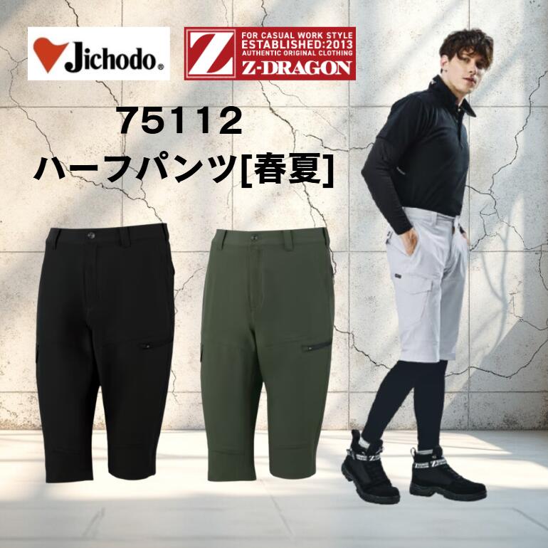 作業服 ストレッチハーフパンツ 75112 S-LL 春夏 自重堂 ジードラゴン Jichodo Z-DRAGON ストレッチ 作業着 メンズ