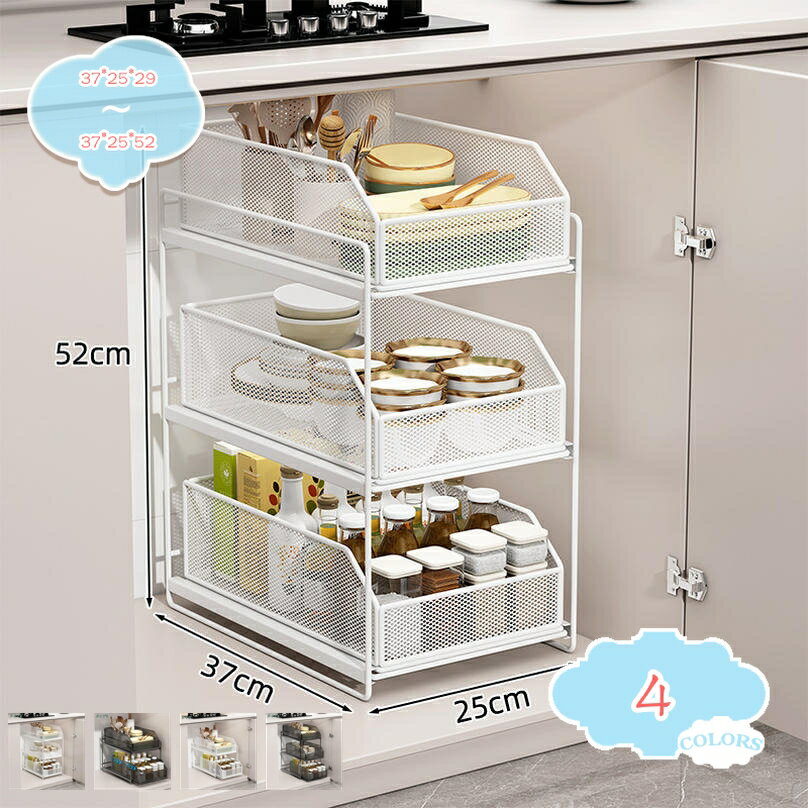 1000円OFFクーポン シンク下収納ラック キッチン下収納 収納棚 スライド式 引き出し 2段 3段大容量 洗面台下収納ラック 隙間収納 小物整理 省スペース 調味料 収納用品 おしゃれ 防汚 防錆 防油 大容量 洗面所収納 スリム おしゃれ 安定性 50KGまで対応 shopcp