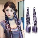 ヘアエクステ 三つ編み ウィッグ カラーエクステ ダンス エクステンション ポニーテール ウィッグ ツインテール 編み込み エクステ 付け毛 コスチューム キッズ イベント (紫)