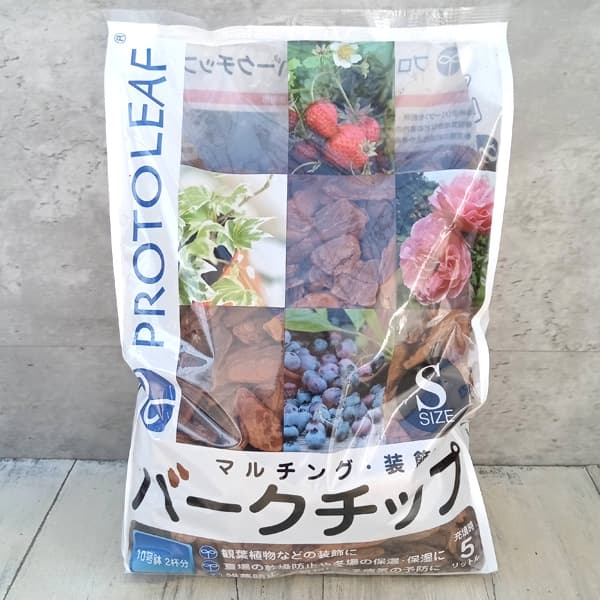 プロトリーフバークチップ(Sサイズ) 5L入り(マルチング・乾燥防止・装飾用)植物の根元を美しく飾るバークチップ。観葉植物などの装飾はもちろん、マルチング材としてもお使いいただけます。鉢植えの根元に敷けば夏場の乾燥防止にもたいへん効果的で、水やりの回数を大幅に減らすことができます。冬場は保湿・保温の働きをします。また雑草防止・泥跳ねによる病気の予防の効果もあります。Sサイズ規格:約3cm容量:5リットル原料:スペイン産アカマツ樹皮色:ダークブラウン容量の目安:マルチング材として使用する場合、40リットルで約1平米分です。敷く厚みにより使用量が異なります。バークチップ(Sサイズ) 5L入り(マルチング・乾燥防止・装飾用)の栽培ガイド8月の暑さ対策霜よけ(防寒)野菜:イチゴ(苺)の栽培方法ファイバーグラスセメントポット mr