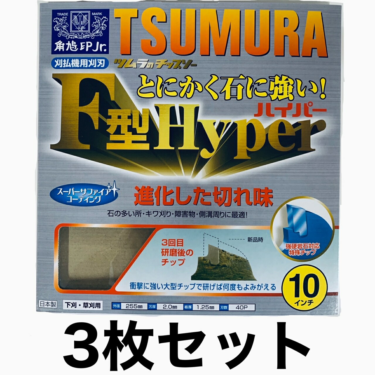 ツムラ F型ハイパー 255mm 3枚セット 40P 10インチ チップソー 刈払機用 刈払機用刈刃 山林 下刈り 草刈り 草刈りチップソー 刈り払い機 刈払い機 刈払機 刈払機用 替刃 替え刃 交換 草刈り機 よく切れる刃 草刈機 竹 笹 雑木 ガーデニング 農業 草刈り 角鳩印 草取り 道具
