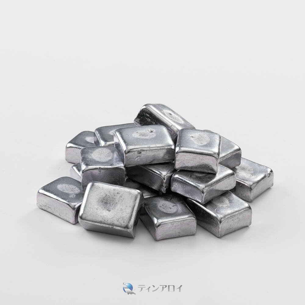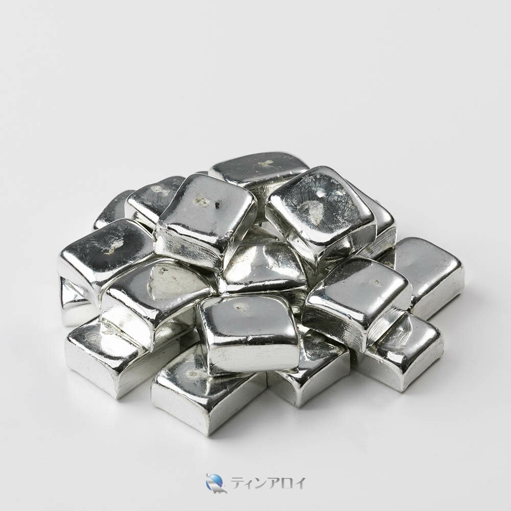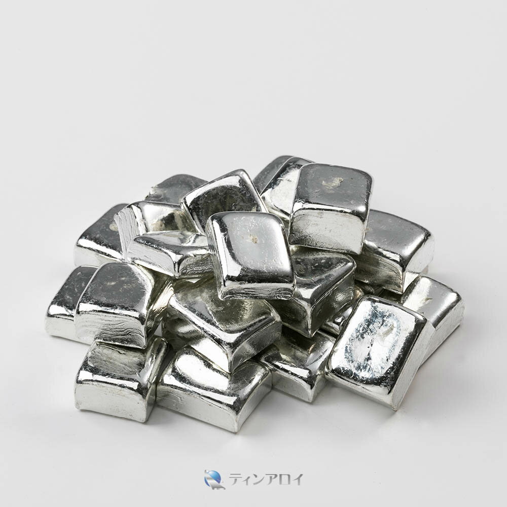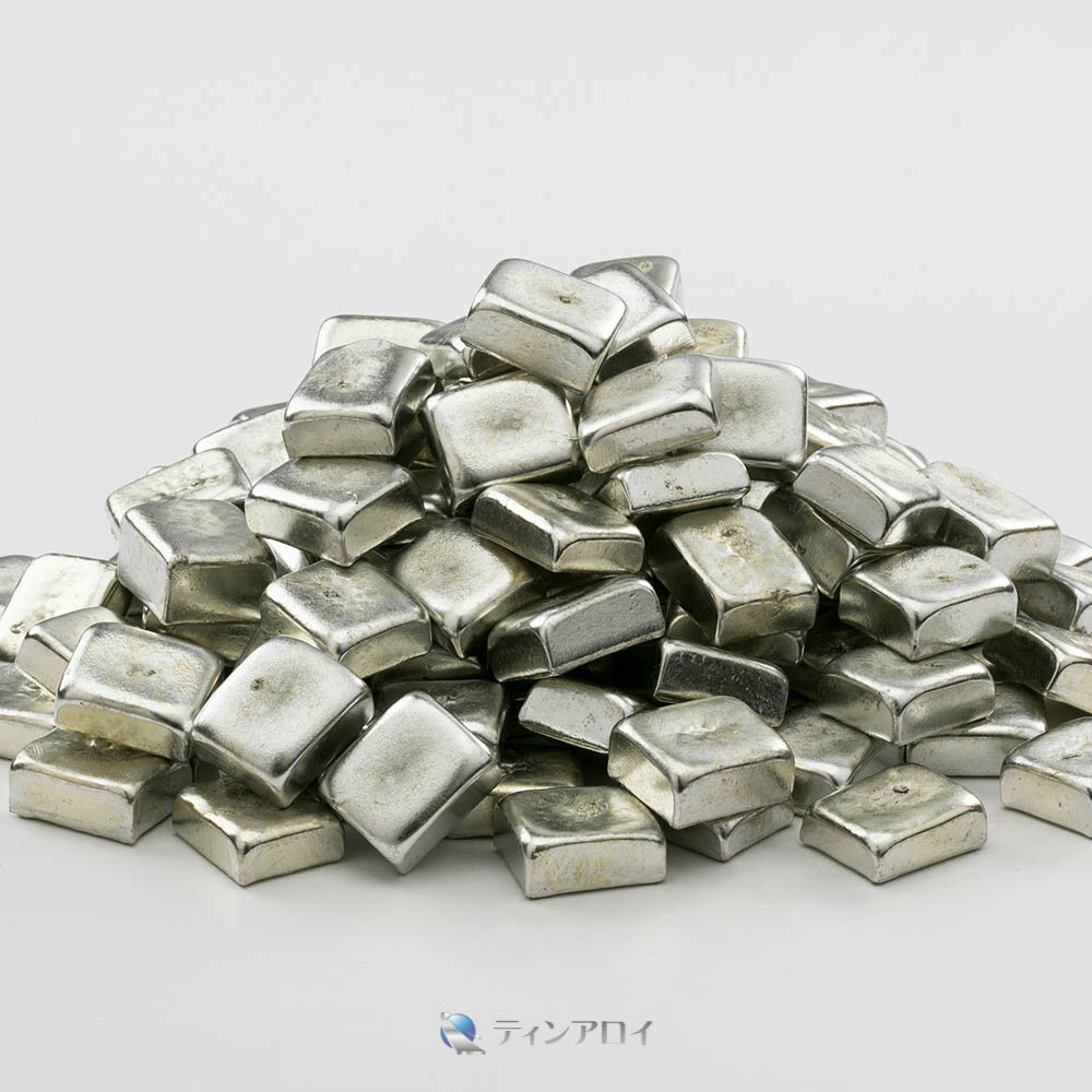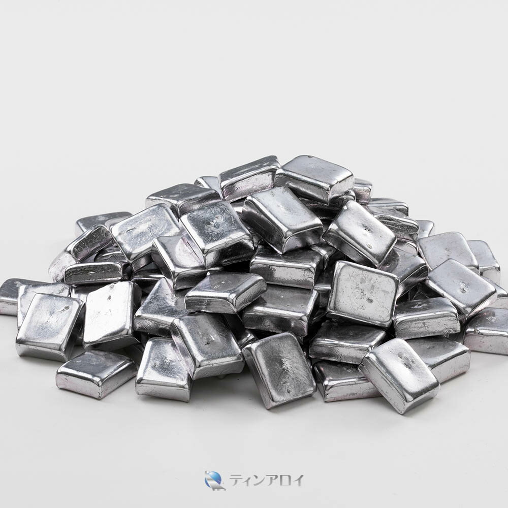 商品コード SN-0002 特徴 高純度錫(Sn99.99%)を使用。キャラメル状の形状のため少量の溶解に適。融点 232℃ 用途 錫をご自身で溶解、鋳造に使用。 重量 1kg サイズ 約15×20×25mm 組成 錫フォーナインSn99.99% <商品説明> 楽天ランキング入賞賞品です!(リアルタイム・デイリー・ウィークリー)高純度(Sn99.99%)の錫をお探しの方に。大きい溶解炉が無い、溶かしやすい形状をお求めの方におすすめ。 約40〜60g/個 ※ご購入数量 1 = 1kg となります。