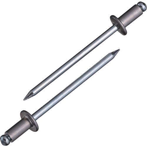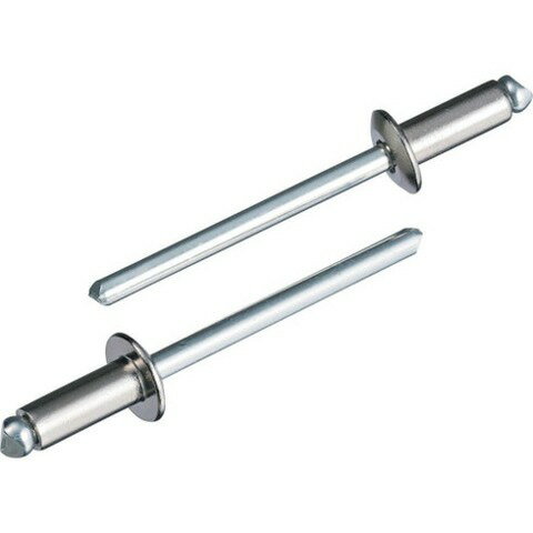【商品説明】【特長】●片側から複数の母材をワン・アクションで締結できます。溶接に比べて作業の省力化や生産性の向上にメリットがあります。【用途】●自動車板金、電機板金等。【仕様】●かしめ板厚(mm):3.2〜6.4●リベット長(mm):10.5●フランジ径(mm):8.0●リベット径(mm):4.0●下穴径(mm):4.1〜4.2●せん断荷重(N):1550●引張荷重(N):2200【備考】●エコボックス入●RoHS指令適合品●箱入数(本):300【材質/仕上】●リベット本体(フランジ):アルミ(A5154)●マンドレル(シャフト):スチール(炭素鋼)