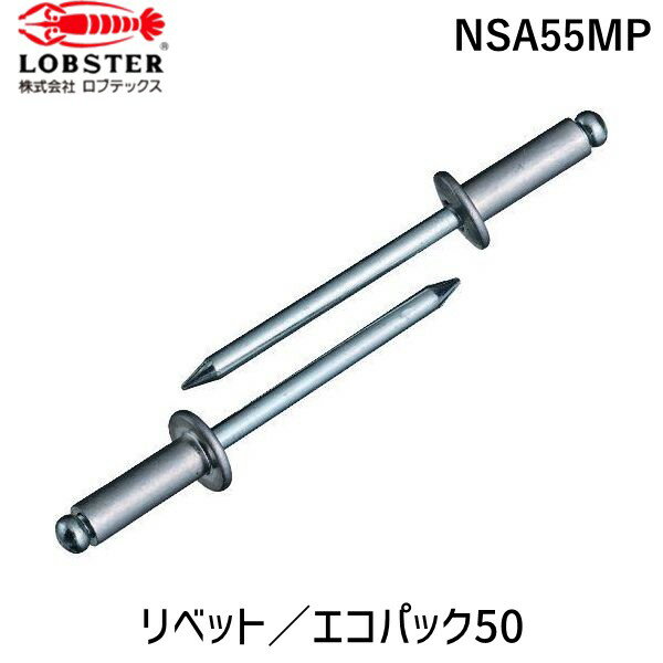 【即納在庫品】「直送」ロブテックス NSA55MP ブラインドリベット アルミニウム/スティール製 5−5 50本入 エコパック ブラインドリベット エビ アルミニウム エコパック入り