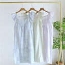 ルームワンピース ネグリジェ パジャマ レディース 夏 カップ付き ルームウェア 綿ガーゼ 部屋着 綿100% ワンピース コットン ワンピ ノースリーブ チェック柄 リラックス ナイトウェア 寝巻き オシャレ 可愛い 20代 30代 40代