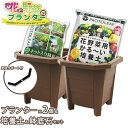 プランター園芸4点セット ブラウン 30cmプランター2個&プロトリーフ培養土25L&鉢底石ネット入り 家庭菜園 野菜 花 ガーデニング 深型