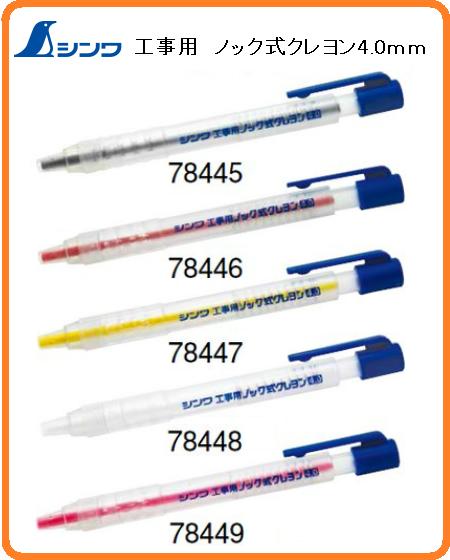 シンワ工事用 ノック式クレヨン 4.0mm黒:78445 / 赤:78446 / 黄:78447白:78448 / 蛍光ピンク:78449鉄材・合板・ガラス・プラスチック・コンクリート・塩ビ管などへのマーキングに!