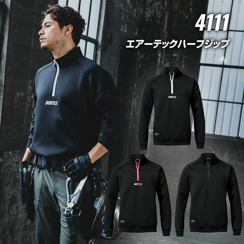 エアーテックハーフジップ 4111 保温性 長袖 トップス 男女兼用 メンズ レディース 作業服 作業着 ワークウェア 防寒服 スポーツ アウトドア BURTLE 秋冬 数量限定 ユニセックス ストレッチ 吸汗速乾