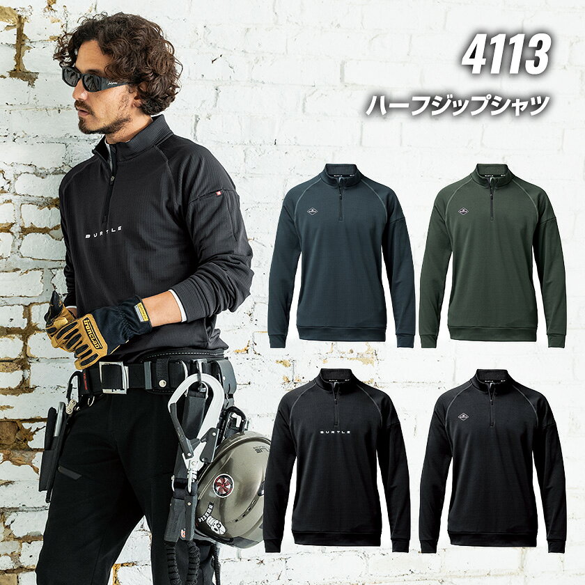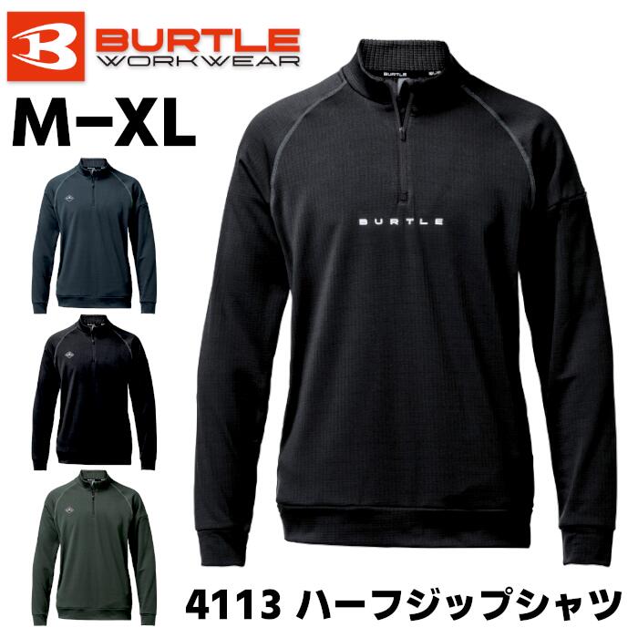 ハーフジップシャツ 4113 保温性 長袖 トップス インナー 男女兼用 メンズ レディース 作業服 作業着 ワークウェア 防寒服 スポーツ アウトドア BURTLE 秋冬 数量限定 ユニセックス ストレッチ 吸汗速乾 制電ケア 消臭 ナチュラルフィット