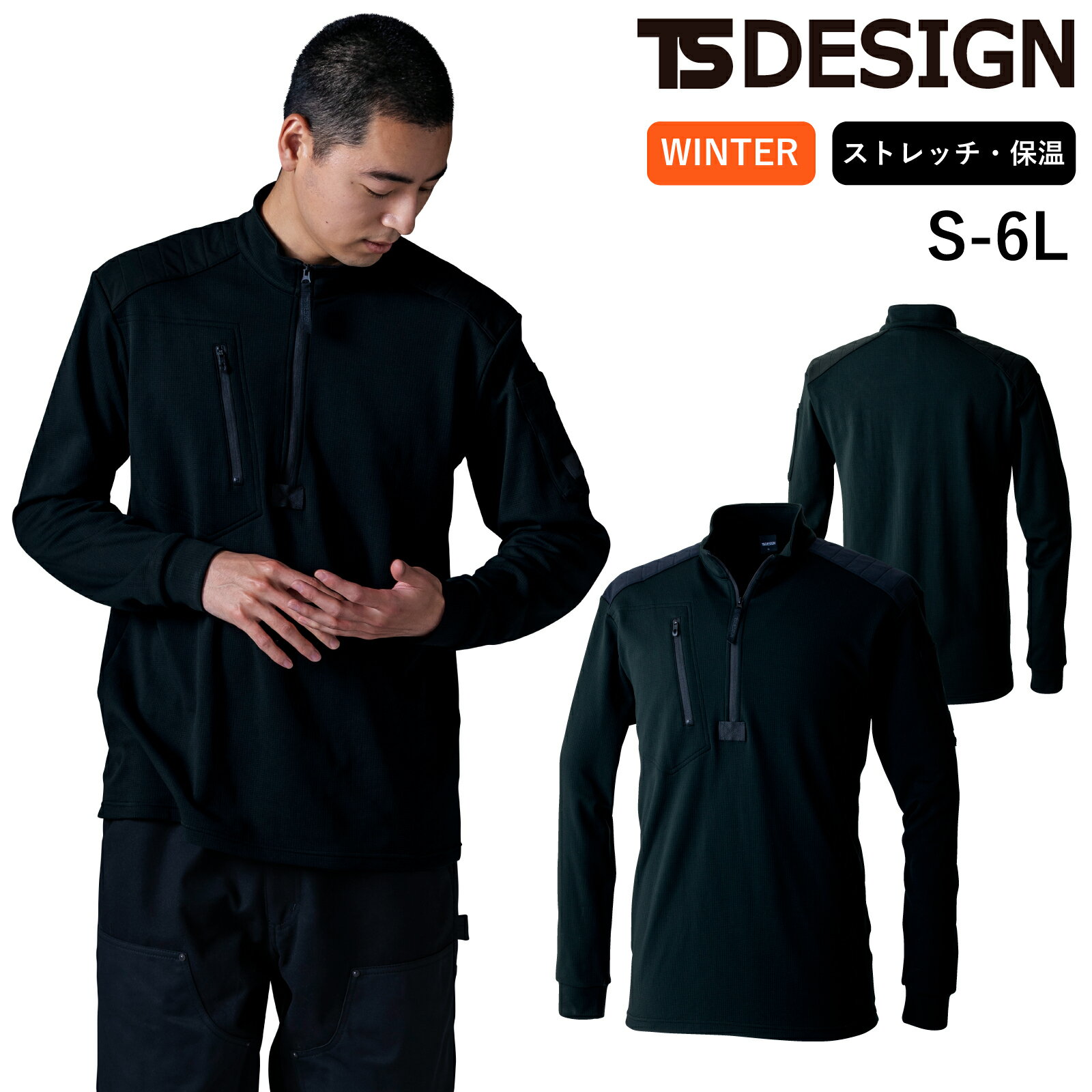 TSDESIGN ハーフジップシャツ 5531 ストレッチ 保温 軽量 秋冬 作業着 メンズ レディース