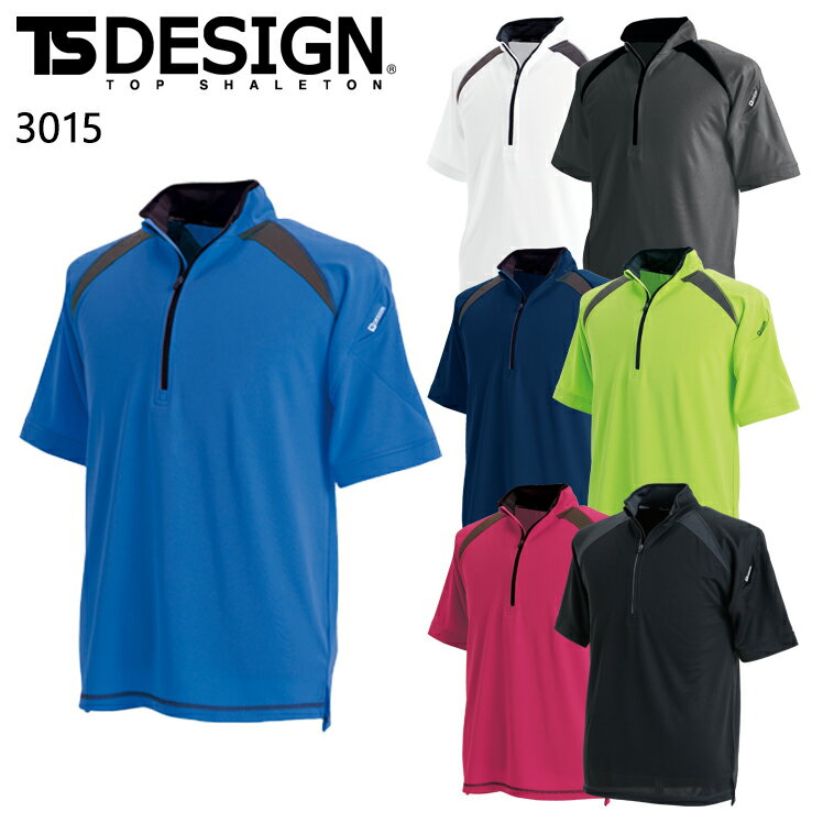 TSデザイン ショートスリーブハーフジップ 3015 メンズ レディース TS-DESIGN 作業着 作業服 SS-6L