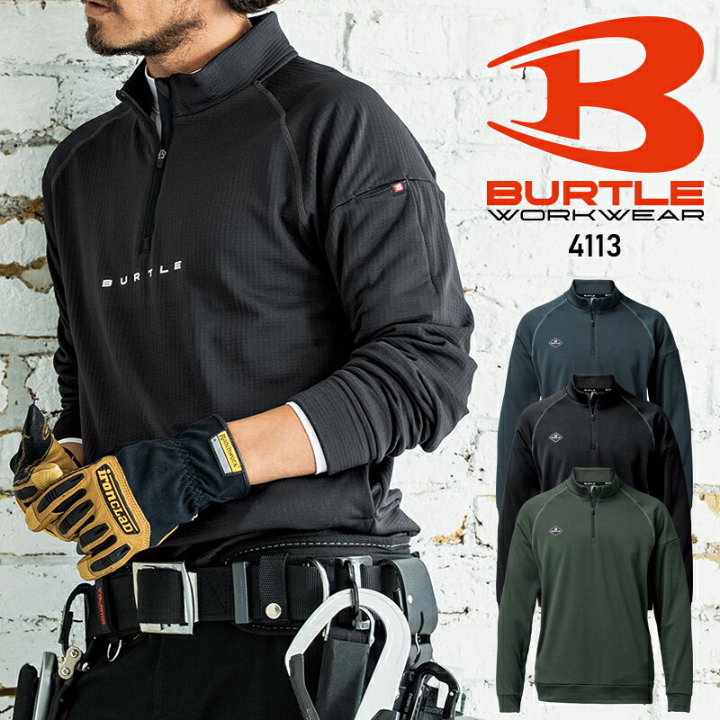 バートル 2025年新作 ハーフジップシャツ 長袖 4113 BURTLE メンズ レディース 秋冬 アンダーレイヤーシャツ 制電 吸汗速乾 保温 消臭 ストレッチ 作業服 作業着