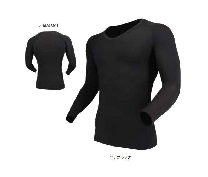 【メール便可】おたふく手袋 春夏JW639 BT冷感・消臭パワーストレッチロングスリーブVネックシャツ S.M.L.LL.3L ブラック 送料安い コンプレッションシャツ スタンダードモデル