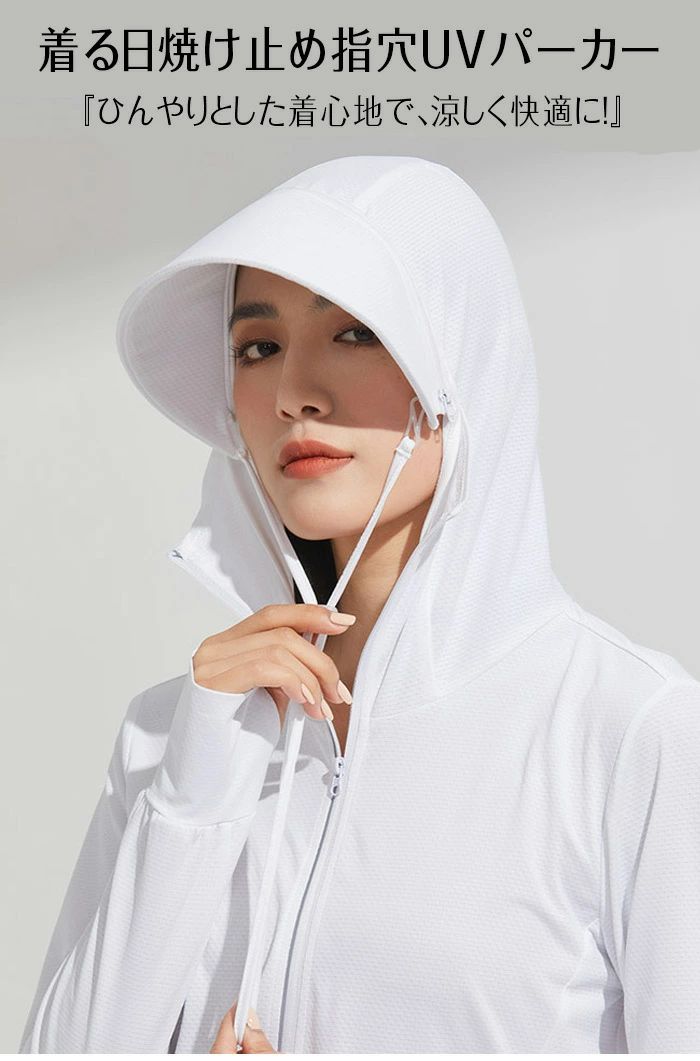 UV パーカー レディース 長袖 ラッシュガード UVカット アウター フード付き カーディガン メンズ 接触冷感 指穴 つば 取り外し あご紐 大きいサイズ トップス 体型カバー 薄手 速乾 シャリ感 日焼け防止 紫外線対策 アウトドア 海 夏