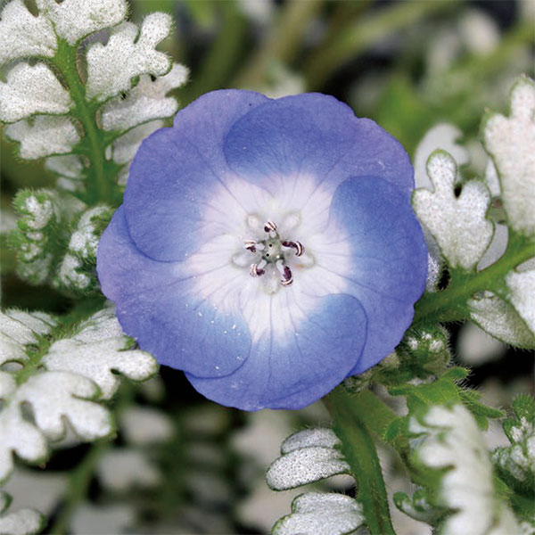 シルバーリーフを持った奇跡のネモフィラ草花の苗/ネモフィラ:プラチナスカイ3号ポット 12株セットシルバーリーフを持った奇跡のネモフィラ。今までにない上品でかわいい最高の容姿です。学名Nemophila 'Platinum Sky' タイプハゼリソウ科ネモフィラ属の耐寒性1年草 草丈約15cm開花期4〜6月用途花壇、鉢植え日照日なた育て方:よく日のあたる場所を好みます。庭植え、またはコンテナに植えつけます。温度と湿度が高いと徒長しやすいので水遣りは控えめにし、十分に日にあててください。写真は成長時(開花時)のイメージですが、お届けの際はまだ苗の状態です。お届け時の苗姿は個体差があります。表示の写真と異なる場合がございます。★花色が安定していないため異なる花色が咲く場合があります。ご了承下さい。ネモフィラ:プラチナスカイ3号ポット 12株セットの栽培ガイドネモフィラ