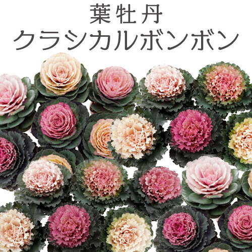【同梱可】同梱可の花苗、鉢などとまとめてお届けできます。 同梱不可以外の送料無料商品、3,980円以上お買い上げの場合は送料無料(一部地域除く)になります。 【商品名】カネコ 葉牡丹 クラシカルボンボン 2.5号セミロングポット 【品種】丸葉タイプ/フリンジタイプ ※品種をお選びください ※1ポットに付き1本立ちです 【色についてご注意ください】個体差・色幅の大きい品種です、白色〜桃色、紫色のものがございます。色指定等はできません、ご了承の上お買い上げください。 【サイズ】7.5cmセミロングポリポット 2.5号 【ご注意点】植物生産物と言う特性上モニターの色そのままと言う訳には参りません事、色等はあくまで一例となります(個体差・色幅が大きい品種です。写真にない色もあります。)事予めご了承下さいませ。 【特長】●白・桃色ベースの葉に葉脈がきれいに色づく、とても雰囲気の良い葉ボタンです。 ●クラシカルな姿で、寄せ植えの主役にぴったりです。 【管理】 ・日当たりがよい場所を好みます。 ・排水性が良い土を好みます。 ・肥料は、市販の緩効性肥料を控えめに与えてください。葉ボタンは肥料を多く必要とはしません。 ・水やりは土の表面が乾いたらたっぷりと与えてください。 植え付け後根が活着するまでは乾かさないように注意します。 ・花芽(トウ)が立ってきたら、とにかく早めに切る様にしてください。 ※肥料はほとんど与えません。肥料を与えすぎるとキャベツのように結球して発色が遅れるので、注意します。 【ポイント】黄色くなって見た目の悪い下葉は適宜取り除いてください。 【用途・飾り方】 花壇 鉢植え ハンギングプランター お正月 クリスマスリース 豪華 葉ボタン 珍しい ハンギング リース 門松 寄植え 【関連品】 葉牡丹関連品はこちら リース作りに【送料無料お試しリースセット】 【よくある質問】Q:どのくらい楽しめますか? A:春まで楽しめます。通常の葉牡丹はお正月イメージ過ぎて春まで植えるのをためらいますが、こちらはブーケの様な綺麗さで長く寄せ植えや花壇に飾れます。トウ立ちしてきたらトコトン切る様にすれば形崩れも減らせます。 一緒におすすめの商品 【一緒に植えると良いお花】 ビオラ、パンジー、スイートアリッサム、プリムラジュリアン、キンギョソウ、八重咲きストックなど複数のミニ葉牡丹と一緒に季節の花苗をアレンジして楽しみましょう。 ⇒ビオラやパンジーなどの一年草ケース販売 【壁に飾るハンギングリースを作ってみたい】 自分で簡単に壁掛けリースを作れる資材セットもございます ⇒(送料無料)花苗で作るリースお試し小セット色味と葉脈が美しいアンティークカラーの葉牡丹 白・桃色ベースの葉に葉脈がきれいに色づく、とても雰囲気の良い葉ボタン。 クラシカルな姿で、寄せ植えの主役にぴったりです。こちらは1ポットで1本立タイプです。通常は複数まとめて植えるとより綺麗です。 目立つ植え込み例とポイント 基本的に葉牡丹は横に広がる植物ではありません。ですから葉牡丹のみを植える場合は、かなり密植する様にして隙間をあまり開けない事が目立たせるポイントになります。植え込み数を減らしたい場合は、ビオラやアリッサムなど横に広がる植物と組み合わせて植えましょう。 丸葉タイプ一例 フリンジタイプ一例 クラシカルボンボンとリトルボンボンの寄せ植え例 【色についてご注意ください】個体差・色幅の大きい品種です、白色〜桃色、紫色のものがございます。色指定等はできません、ご了承の上お買い上げください。 葉牡丹関連品はこちら 1