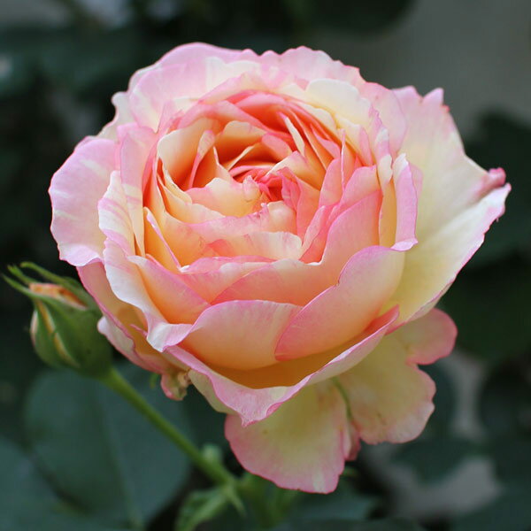 様々な表情を見せる魅惑の花姿 つるバラバラの苗/デルバールローズ:ペッシュ・ボンボン6号角鉢植え*ペッシュ・ボンボンは切れ込みが入る花弁がたっぷりと重なって、個性的なシルエットの大輪咲きになります。花弁は淡い黄色からグラデーションがかってピンクの縁取りがが入ったり、絞りになったり様々な表情を見せます。ショートクライマーとしてアーチやオベリスクに向きます。甘い香りの強香種。名はその愛らしい色、形、香りから‘桃のお菓子=ペッシュ・ボンボン’と命名されました。フランス・デルバール・2009年花色:アプリコット〜ピンク花径:10cm花形:ディープカップ開花期:四季咲き性(春〜秋)樹高:高さ180cm、幅120cm樹形:シュラブ香り:強香用途:庭植え、フェンス、トレリス 栽培方法はバラの植え方とお手入れをご覧ください。お届けする苗は、大苗(2年苗)の6号オリジナル角鉢植えです。(岐阜県産)写真は成長・開花時のイメージです。花色・花形は気候生育環境により表示の写真と異なる場合があります。また、植えつけた初年や株の充実度の弱いものは、花弁数が少なく花形も変化します。デルバールローズ:ペッシュ・ボンボン6号角鉢植え*の栽培ガイドフレンチローズ・デルバール社バラの植え方とお手入れデルバールのバラ栽培方法