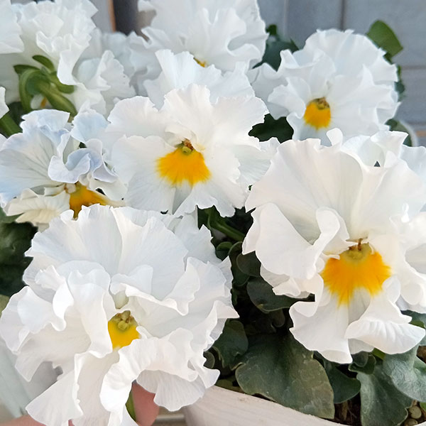 草花の苗/パンジー(フリル咲き):シュガーボンボン(ホワイト系)3号ポット 3株セット