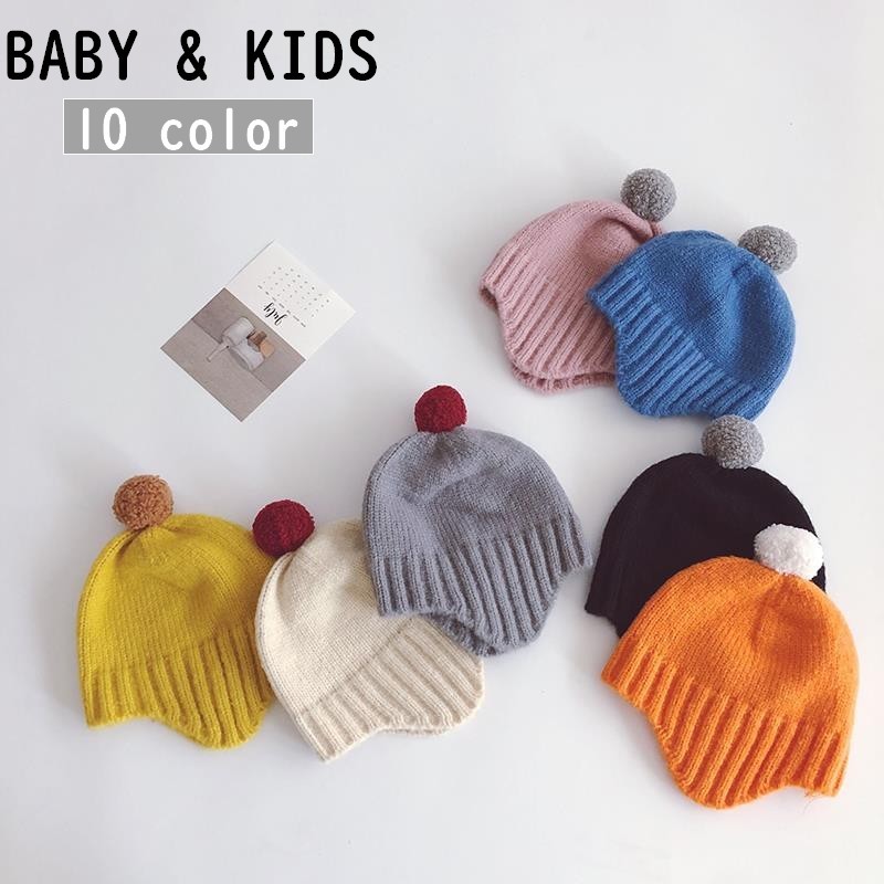 ニット帽 帽子 ベビー 赤ちゃん キッズ 子供用 女の子 男の子 ぼうし ぽんぽん ボンボン シンプル 防寒 耳保護 暖かい おしゃれ