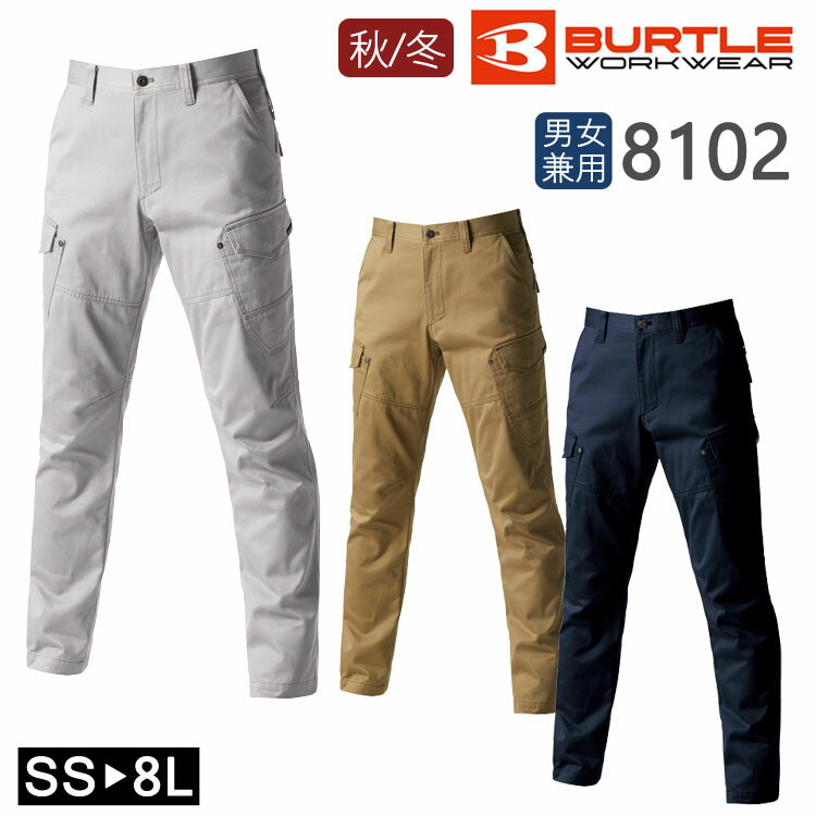 作業着 秋冬 ワークウェア カーゴパンツ BURTLE バートル 8102 メンズ ワークパンツ 作業服 かっこいい おしゃれ もてる シンプル ツイル メンズ レディス レディース 綿 コットン 防縮 綿100% 作業用パンツ 無地 DIY バイク バイカー ライダー ゴルフ 釣り