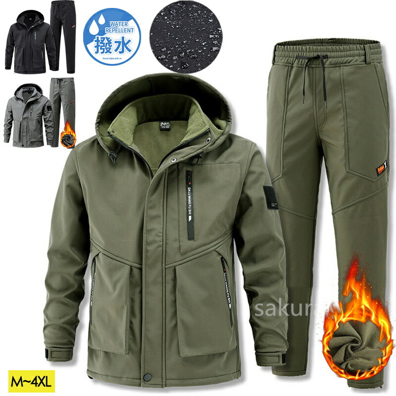 撥水 マウンテンパーカー 上下セット メンズ 裏起毛 ウインドブレーカー 上下 防寒着 上下セット ジャケット ジャンパー ミリタリー 上下セット ボアパンツ スポーツ 作業服 アウトドア 自転車 登山ウェア 釣り ゴルフ 暖かい キャンプ 秋冬 冬物