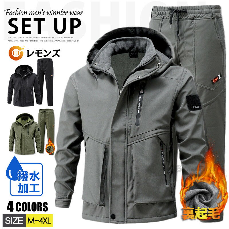 セットアップ 撥水 マウンテンパーカー 上下セット メンズ 裏起毛 ウインドブレーカー 上下 防寒着 上下セット ジャケット ジャンパー ミリタリー 上下セット ボアパンツ スポーツ 作業服 アウトドア 自転車 登山ウェア 釣り ゴルフ 暖かい キャンプ 秋冬 冬物