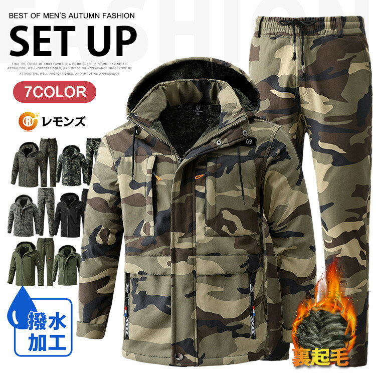 ウインドブレーカー 上下 メンズ 防寒着 上下セット ジャケット ミリタリー 上下 アウトドア セットアップ 撥水 裏起毛 暖かい マウンテンパーカー アウター ジャンパー ボアパンツ ランニング 迷彩服上下 ゴルフウェア 登山服 作業服 自転車 キャンプ 防風 保温 秋冬