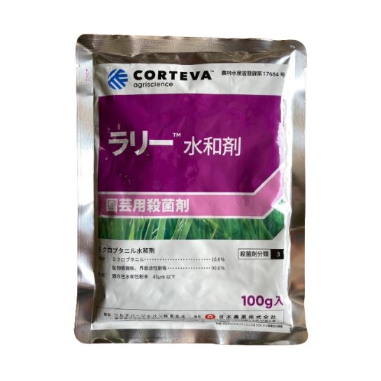 【ネコポス(メール便)のご利用について】■購入手続き画面で配送方法を「追跡可能メール便(ヤマト運輸)」にご選択ください。 ■当店では宅配便とネコポス(メール便)で発送しており、指定が無い場合は宅配便発送となります。 ■商品名に「ネコポス対応可能」と記載のある同一商品で、「〇個まで」の数量内であればネコポスで発送が可能です。(数量制限が無い商品もございます。) ■ご注文品にネコポス対応可能でない商品を含む場合や規定数量以上の場合は宅配便での発送となります。送料がかかる場合は改めてメールでご連絡いたします。 ■ネコポスは、配達日時をご指定いただけません。また、ポストへの投函となりますので、万が一、盗難や紛失、破損等に遭われた場合には、一切の保証は致しかねますので予めご了承くださいませ。 ※詳細は「配送について」をご確認ください。特長 ●幅広い病害に有効で、りんごでは黒星病、うどんこ病、赤星病、なしでは黒星病、赤星病の同時防除ができます。 ●多くの薬剤と混用事例があります。 ●治療効果と予防効果に優れています。 ●浸透移行性に優れています。 ●耐雨性に優れています。 ●残効性に優れています。高い残効性を示します。このため散布間隔にゆとりが持てます。 ●ガス効果があります。 ●耐性菌に対しても有効です。 ●ミツバチ、カイコや他の有用昆虫に対する影響はほとんどありません。 ●花粉に対しても安全です。 ●人畜に対する毒性が低く安心して使用できます。 商品名 ラリー水和剤 分類 殺菌剤 有効成分 ミクロブタニル・・・10.0% 毒性 普通物 内容量 100g 適用作物名 あさつき、いちご、いちじく、おうとう、かき、かぼちゃ、ぎぼうし、きゅうり、さやえんどう、すいか、たばこ、茶、とうがらし類、なし、なす、ねぎ、ピーマン、実えんどう、未成熟ささげ、メロン、もも、らっきょう、りんご、わけぎ、トマト、ミニトマト、アスパラガス、西洋芝(バーミューダグラス,ブルーグラス,ベントグラス)、日本芝 適用病害虫・雑草 さび病、うどんこ病、灰星病、網もち病、炭疽病、もち病、斑点病、黒星病、赤星病、すすかび病、斑点落葉病、葉かび病、褐斑病、茎枯病、ヘルミントスポリウム葉枯病、ダラースポット病、炭疽病、カーブラリア葉枯病 関連品 → ラリー水和剤 250g 注意事項 ※製品のラベルには適用病害虫の範囲及び使用方法、効果・薬害・安全上の注意などが記載されております。よくお読みいただいて、適切な方法でご使用ください。 ※パッケージは予告無しに変更になる場合がございます。