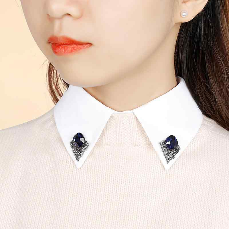 付け襟 レディース 女性用 韓国風 万能 着回し 飾り襟 フェイクカラー シャツ襟 ボタン留め オールシーズン ポリエステル 無地 白 黒 スクエア ラウンドネック 通勤 普段使い