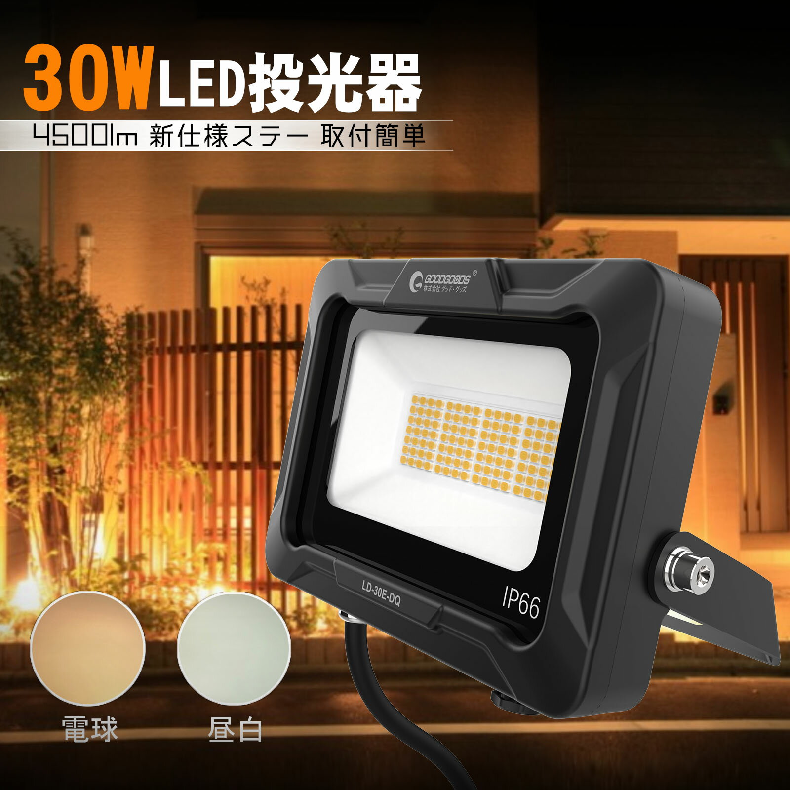 【値下げ商品】GOODGOODS LED 投光器 30W 4500lm 照射角度120° 昼白色 電球色 5000K 3000K 屋外 防水 IP66 ステー調整角度300° 結露防止 耐熱 高輝度 作業灯 スポットライト 看板照明 駐車場灯 工事照明 店舗照明 街灯 DIY作業 ガレージ 集魚灯 釣り LD-30E