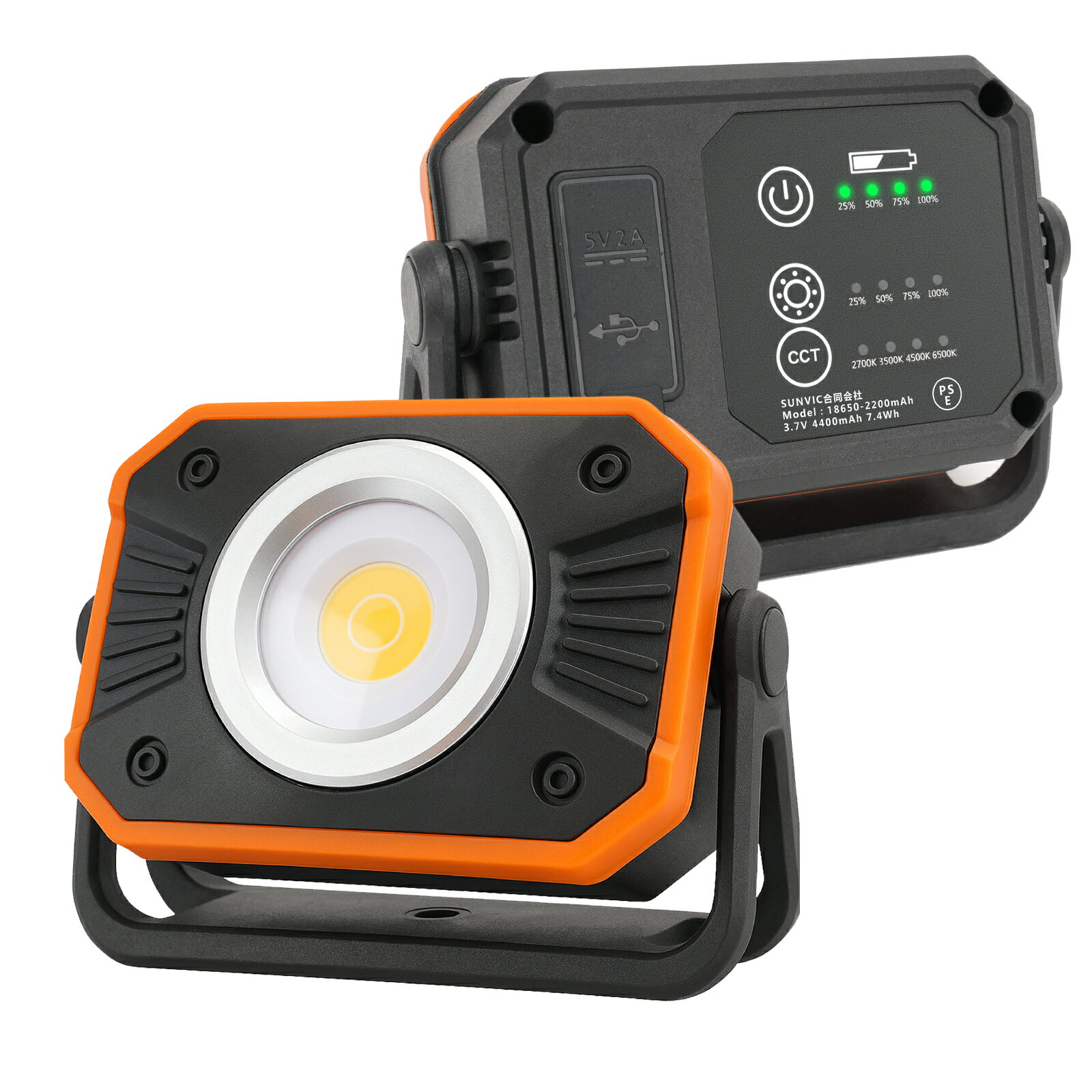 \お買い物限定セール・20%オフあり!/【ランキング入賞】SUNVIC LED 投光器 充電式 20W高輝度 4400mAH大容量 コードレス 作業灯 ワークライト 360度折り畳み式 夜釣り USBポート付 スマホ充電 モバイル電源 アウトドア 防災グッズ 緊急照明 キャンプ 非常灯 COBチップ
