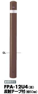 サンポール ピラー 車止めポール FPA-12U4反射テープ付 固定式 茶色 φ114.3