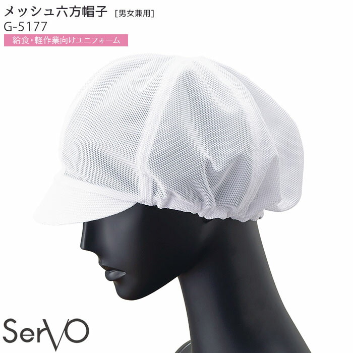メッシュ六方帽子 食品工場 G5177 男女兼用 軽作業向け 給食 制服 ユニフォーム SerVo サーヴォ