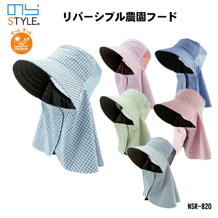 農作業 帽子 レデイーズ のらスタイル 農園フード NSR820 ガーデニングフード 農園帽 ガーデニング メッシュ 日よけ リバーシブル ベーシックアソート ストライプ チェック ブルー グリーン ピンク ブラック