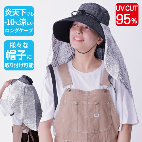 (涼かちゃん公式) ロングケープ 真夏の直日対策 暑さ対策 帽子につけて背中を日よけ 日焼け防止 紫外線対策 田んぼ 畑 農作業 釣り アウトドア UVカット95% 真夏の直日対策 太陽光を反射 丸福繊維 [M便 1/1]