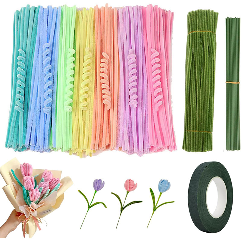 手芸モール 造花セット 300本 手作りキット カラーモール 花束 DIY 手芸材料 フラワーワイヤー 可愛い 誕生日 記念日 母の日/バレンタインデー 贈り物 手作り材料
