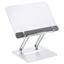 アクリルブックスタンド 高さ調節可能なブックホルダートレイ 金属製ページ クリップ付き 書籍 ノートパソコン 教科書 雑誌用 シルバー