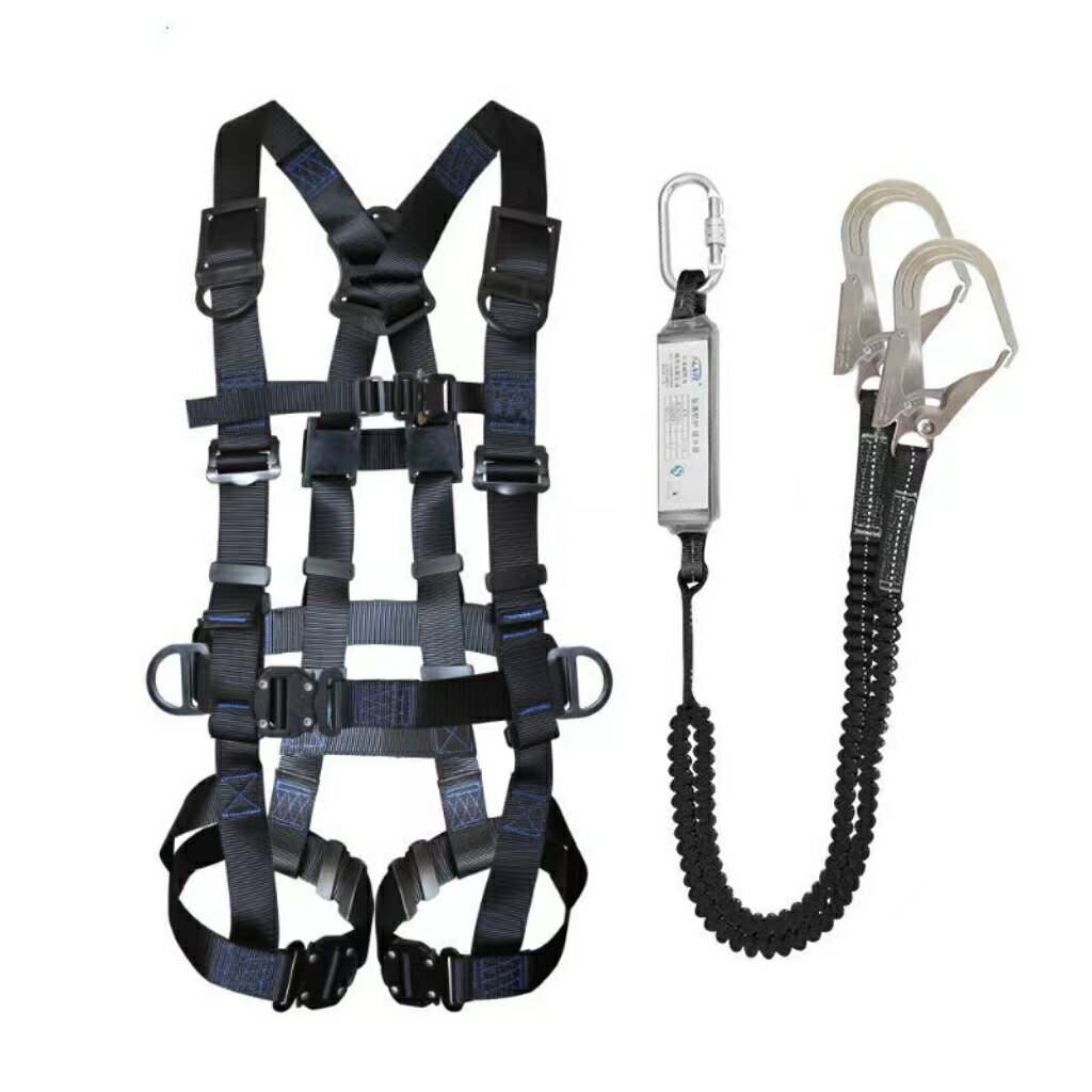 フルハーネス 安全帯 セット フルハーネス ランヤード セット 墜落制止用器具 2022 新規格適合 ワンタッチバックル 伸縮式 ダブルランヤード付き 全身保護 落下防止 高所作業用 使用可能質量 100kg 病院 看護 介護