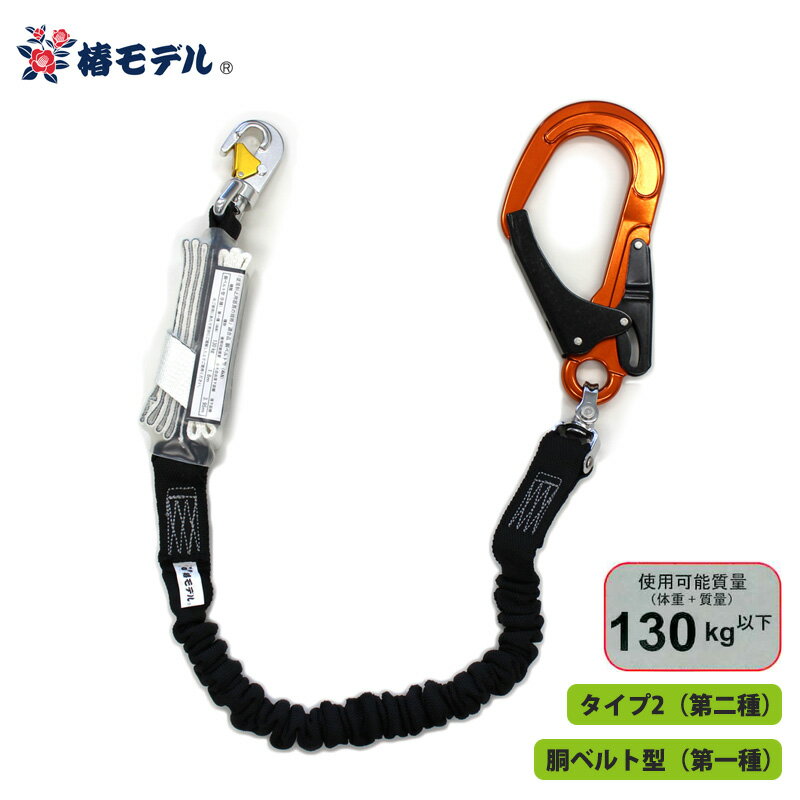 伸縮式 シングルランヤード 100kgまで オレンジ 墜落制止用器具の規格 適合品(第二種/第一種/B種) 椿モデル 20BL-ASOR-LJBL ( 安全帯 アイダタイプ2 高所作業 建設作業 鳶職 新規格適合品 harness1 )