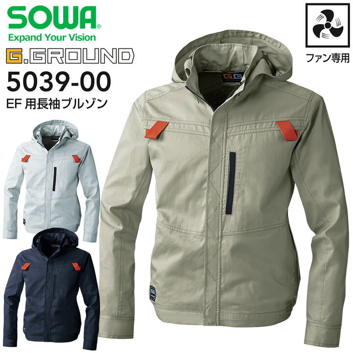 空調服用 長袖ブルゾン 服のみ SOWA 5039-00 ファン専用 フルハーネス対応 熱中症対策 春夏 吸汗 綿100% メンズ フード付き アウトドア カジュアル 涼しい スポーツ ファン付きウェア対応 ジャケット かっこいい おしゃれ 作業服 作業着 桑和【M-3L】