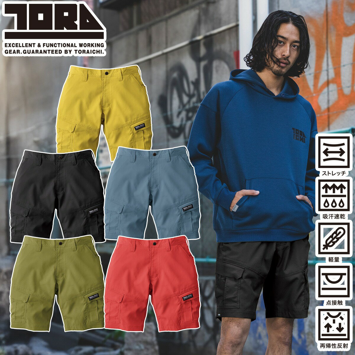 2025年新商品 寅壱 カーゴハーフパンツ 限定色 OD カラシ ファイヤーレッド 1213-241 吸汗速乾 ストレッチ軽量 耐久性 点接触 再帰性反射 春夏 熱中症対策 ポケット二重仕立 メンズ 男女兼用 現場 作業ズボン 半ズボン TORA