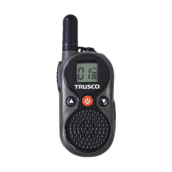 >商品名:TRUSCO 特定小電力トランシーバー 2台セットTRUSCO コードNo: TR-20Xオレンジブック発注コード:382-0197JANコード: 4550414135066特徴●ベルトクリップにイヤホンマイクもセットになった2台セットの特定小電力トランシーバーです。●シンプルで現場に強い、使いやすい仕様です。●38グループモード装備をはじめ、ハンズフリー(VOX)機能、オートパワーオフ、チャンネルスキャン機能、ベル機能など便利な機能を搭載しています。●単3型アルカリ乾電池3本で約60時間運用も可能です。(使用状況や使用する乾電池により異なります)●総務省技術基準適合品です。●免許・資格不要で、どなたでもご使用いただけます。●チャンネルを合わせることで、何台でも通話可能です。用途●飲食店、量販店、パチンコ店、病院、介護施設、学園祭や部活動など様々な場面に。仕様●色:黒●幅(mm):58●奥行(mm):28●高さ(mm):103●アンテナ長(mm):85●市街地通話距離(km):0.1〜0.2●郊外通話距離(km):1●アンテナタイプ:回転式●免許・資格要不要:不要●タイプ(屋内/屋外):屋内●送受信周波数(MHz):422.050〜422.300●チャンネル数:20●ノイズキャセリング:無●グループトーク有無:有仕様2●単3型アルカリ電池別売材質/仕上げ●本体:プラスティックセット内容・付属品●本体×2●イヤホンマイク(耳掛けタイプ)×2●ベルトクリップ×2●取扱説明書(保証書付)×1注意事項●本機は防塵防水性能を備えておりませんので、雨の日や水を扱う場所や粉塵の舞う場所等での使用には適しておりません。●単3型アルカリ電池×6本(1台につき3本使用)は付属しません。別途ご用意下さい。