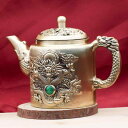 茶器 真鍮 龍鳳 回転式 急須 ティーポット リビング オフィス 来客 接客 卓上飾り 置物 オブジェ 中華風 工芸品