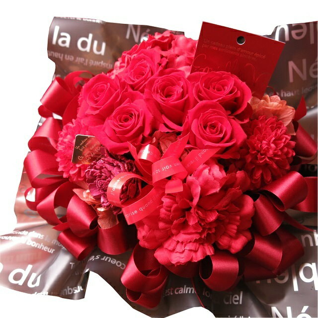 還暦祝い 赤バラ 花束風 ギフト プリザーブドフラワー入り ケース付き 赤バラいっぱい プリザーブドフラワー ◆還暦祝いプレゼント・記念日の贈り物におすすめのフラワーギフト
