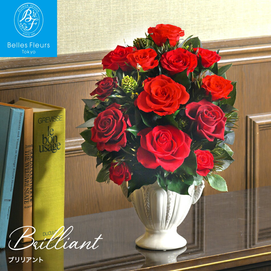 法人 還暦 長寿「ブリリアント」プリザーブドフラワーベル・フルール 百貨店 高級 バラ レッド ピンク パープル 黄色 熨斗紙 のし紙 立て札 メッセージカードギフト ケース入り 花 大型 豪華 プレゼント 開業祝い 就任祝い 法人 開店 新築 退職 異動 内祝い