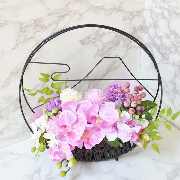 ご利用用途:開業祝い、開業・オープン祝い、移転祝い、引越し祝い、誕生日祝い、結婚記念日、歓迎・退職祝い、卒業祝い、出産祝い、公演・楽屋見舞い、ビジネス、結婚祝い、記念日、退院祝い、母の日、敬老の日、就職祝い、楽屋花・金婚式・銀婚式・還暦・緑寿・古希・喜寿・傘寿・米寿・卒寿・白寿・百寿・快気祝い・ギフト・プレゼント・花・フラワーギフト商品詳細 雄大な富士山をバックに3色の胡蝶蘭をたくさん盛り込みアレンジしました。 和室や洋室のインテリアにもよく合う、和モダンのアーティフィシャルフラワーアレンジです。 商品サイズ 約高さ30cm 幅30cm 奥行9cm 使用花材 アーティフィシャルフラワー ご利用用途 開業祝い、開業・オープン祝い、移転祝い、引越し祝い、誕生日祝い、結婚記念日、歓迎・退職祝い、卒業祝い、出産祝い、公演・楽屋見舞い、ビジネス、結婚祝い、記念日、退院祝い、母の日、敬老の日、就職祝い、楽屋花・金婚式・銀婚式・還暦・緑寿・古希・喜寿・傘寿・米寿・卒寿・白寿・百寿・快気祝い・ギフト・プレゼント・花・フラワーギフト