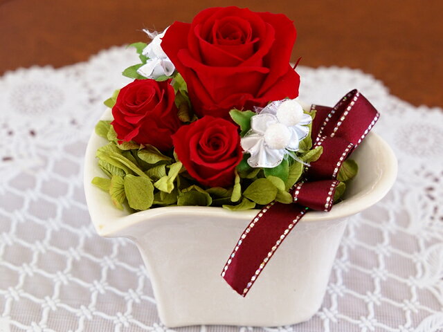 ギフト対応 ◆この商品はクリアケース入りでお届けいたします。 ◆プリザーブドフラワーの取り扱い説明カード入り。 ※大きな文字の説明書をご希望の方は備考欄へご記入ください。 商品サイズ 幅25cm×奥行き20cm×高さ35cm クリアケースサイズ:六角(各辺15cm×高さ37cm) 重さ:1kg (参考値) 材質 ◆花材:プリザーブドフラワー(バラ、サリグナム、リーフ、苔)・アーティフィシャルフラワー(リーフ) ◆花器:陶器 プリザーブドフラワーは、水やり等の手間なく長期間保つ事から、バースデーギフト(誕生日祝い)・結婚祝い・開業祝い・開店祝い・新築祝い・内祝い・出産祝い・両親贈呈ギフトなどの贈り物、法人様向けご進物にはもちろん、アート性の高い作品はご自宅用のインテリアやオフィス・ショップのディスプレイに、落ち着いた色や故人のお好きだった色や花はお供え・仏事にもご利用頂いております。ブリザードフラワー、ブリザーブドフラワーではなく「保存する」という意味の「プリザーブドフラワー/preserved flower」が正しい名称となります。直射日光、水気・湿気を避けるとより美しさが長持ちします。 [よくお問い合わせいただくご用途・キーワード] プリザーブドフラワー ブリザードフラワー ブリザーブドフラワー 専門店 花 会長 社長 社長就任 役員 専務 常務 部長 係長 総務 人事 営業 編集 広報 秘書 身内 飲食店 クラブ ゴルフ レストラン ホテル 100 50 30 20 10 周年 創立記念 記念品 プレゼント ギフト 熨斗 のし 立て札 立札 札 名入れ 文字 BtoB お返し 内祝 返礼 お祝い 祝い 御祝い 御祝 お礼 御礼 総理 大臣 花輪 企業 起業 開業 開店 就任 栄転 異動 昇進 景品 贈り方 マナー ハウツー タイミング 同時 挨拶 祝電 メッセージ メール 手紙 文面 文章 例文 領収証 領収書 請求書 後払い 花 通販 指定日 送別会 退職 ギフト 誕生日 パーティー お土産 手土産 配送 翌日 当日 緊急 急ぎ 送料無料 オーダーメイド オーダー フルオーダー セミオーダー カスタムメイド 胡蝶蘭 3本立 5本立 10本立 バラ 高級 豪華 花束 還暦 古希 喜寿 傘寿 米寿 卒寿 百寿 賀寿 長寿 北海道 青森 岩手 宮城 秋田 山形 福島 茨城 栃木 群馬 埼玉 千葉 東京 神奈川 新潟 富山 石川 福井 山梨 長野 岐阜 静岡 愛知 三重 滋賀 京都 大阪 兵庫 奈良 和歌山 鳥取 島根 岡山 広島 山口 徳島 香川 愛媛 高知 福岡 佐賀 長崎 熊本 大分 宮崎 鹿児島 沖縄 本店 銀座 虎ノ門 新橋 伊勢丹 新宿 日本橋 三越 松屋銀座 西武 池袋 横浜 高島屋 タカシマヤ 松坂屋 名古屋 栄 大丸 神戸ブリリアント レッド/イエロー/ピンク/パープル/ホワイト 大輪のバラをたっぷりと使用した上質感のあるアレンジメント。 安定感のある白い陶器の花器に、ふくよかに広がる卵型のフォルムは、誰からも好まれる、華やかな“王道のギフトアレンジメント”として、主に法人のお客様に人気のデザインです。 専用のクリアケースに入れてお届けいたしますので、ギフトとしての価値をワンランクアップ。開業祝いや移転祝い、就任・当選祝いなど、大切な取引先や目の肥えた方々にも自信を持ってお贈り頂けます。