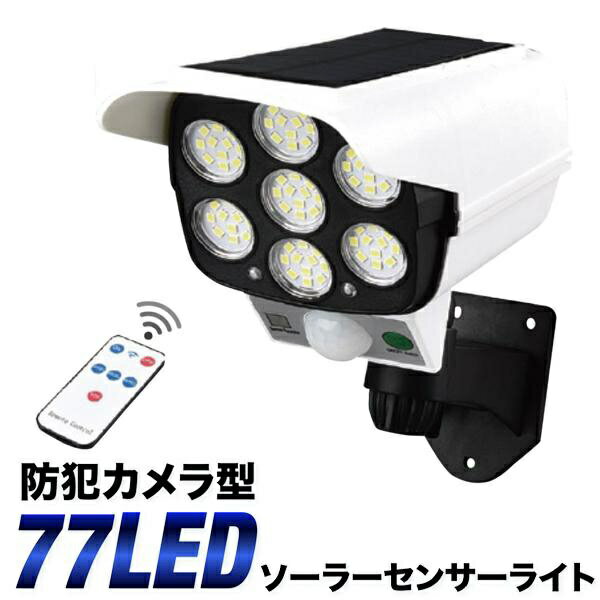 ソーラーライト ダミーセキュリティカメラ 77LED センサーライト 屋外照明 人感センサーライト 3つ点灯モード IP65防水 防塵 電源不要 防犯カメラ型 自動夜間点灯 人感検知 ダミーカメラ型ライト 壁掛け庭先 玄関周りなど対応