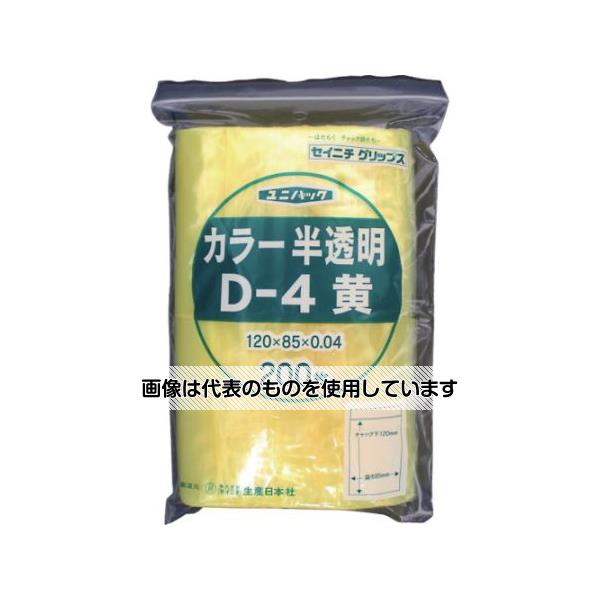 生産日本社(セイニチ) チャック付ポリ袋 ユニパック D-4 半透明黄 縦120×横85×厚さ0.04mm 200枚入 D-4-CY 入数:1袋(200枚入)